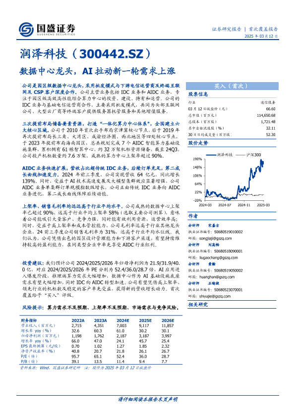 【国盛证券】【20250312】润泽科技-300442.SZ-数据中心龙头,AI拉动新一轮需求上涨-21页