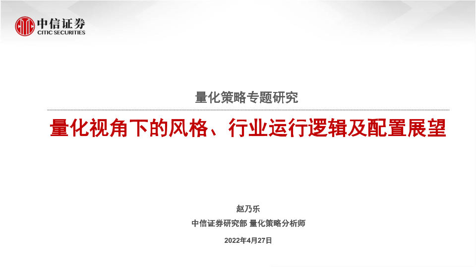 【中信证券】【20220427】量化策略专题研究:量化视角下的风格、行业运行逻辑及配置展望-27页