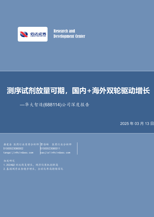 【信达证券】【20250313】20250313-信达证券-华大智造-688114.SH-公司深度报告:测序试剂放量可期,国内+海外双轮驱动增长-27页