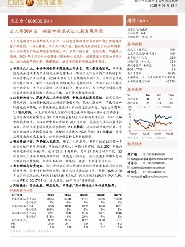 中药创新 产品研发 华润体系 生物医药 财务预测