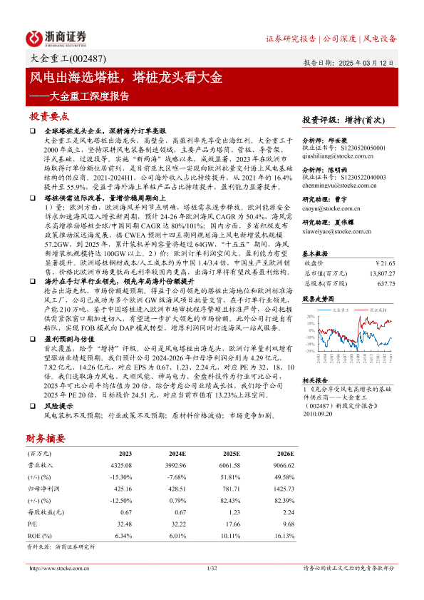 【浙商证券】【20250312】大金重工深度报告:风电出海选塔桩,塔桩龙头看大金-32页