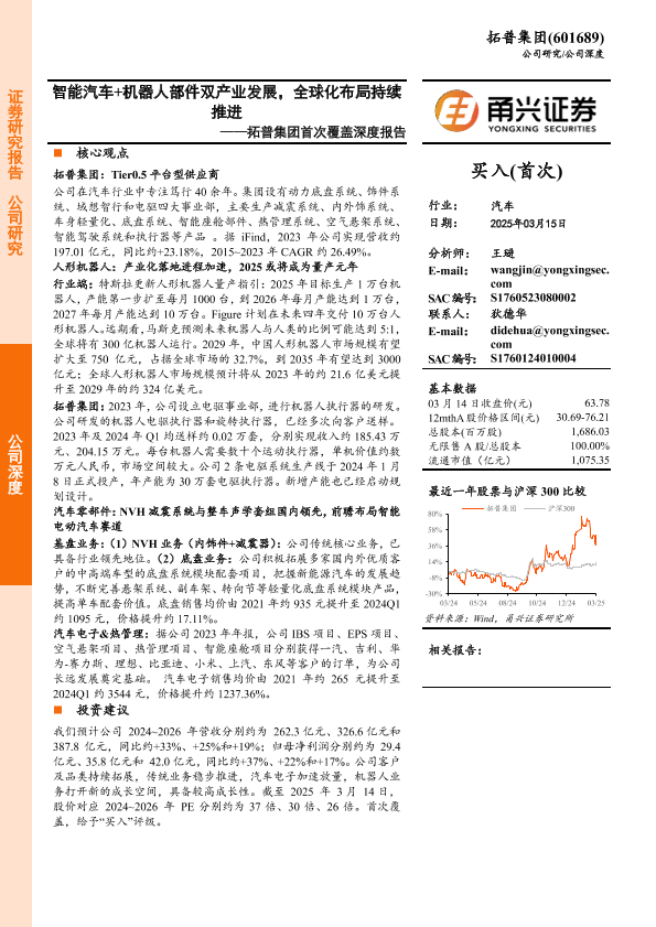 【甬兴证券】【20250315】拓普集团首次覆盖深度报告:智能汽车+机器人部件双产业发展,全球化布局持续推进-22页