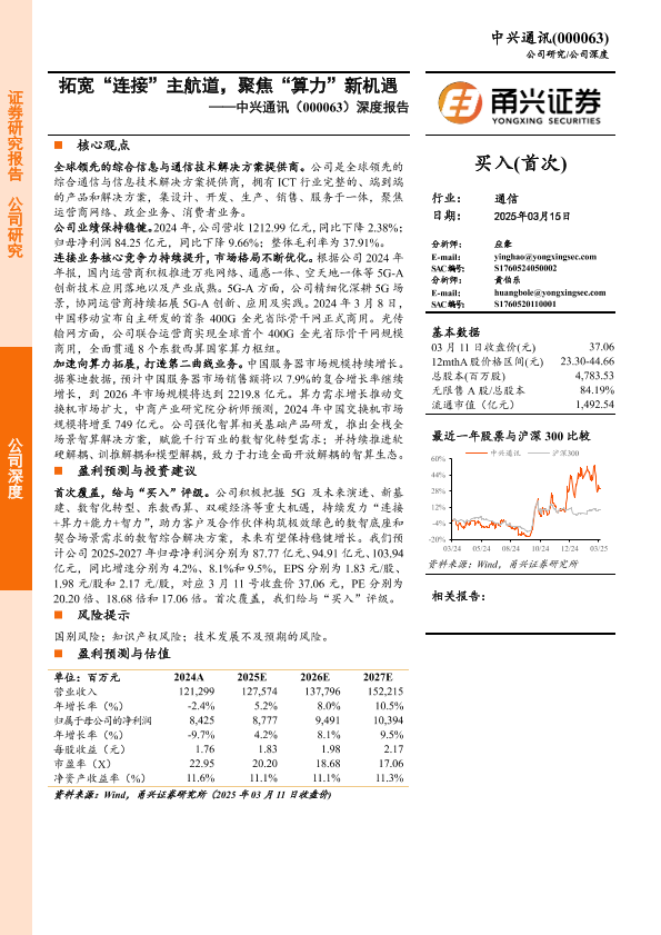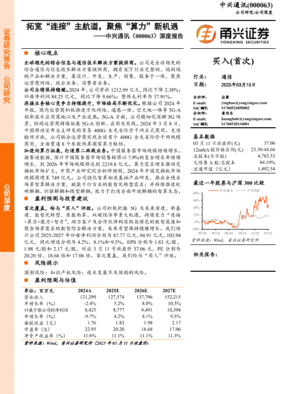 【甬兴证券】【20250315】拓宽“连接”主航道,聚焦“算力”新机遇——中兴通讯(000063)深度报告-33页
