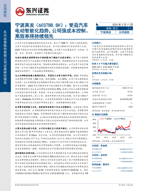 【东兴证券】【20250317】宁波高发:受益汽车电动智能化趋势,公司强成本控制、高效率将持续领先-23页