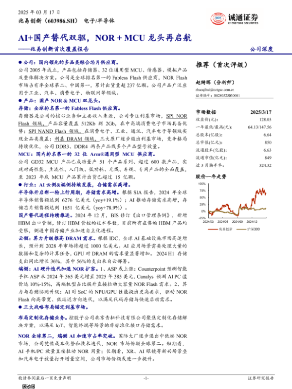 【诚通证券】【20250317】兆易创新首次覆盖报告:AI+国产替代双驱,NOR + MCU龙头再启航-32页