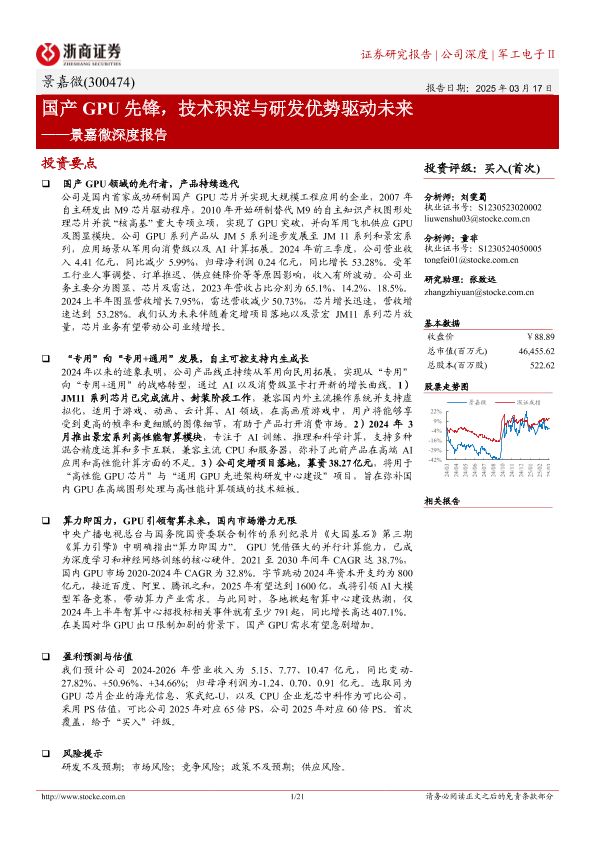 【浙商证券】【20250317】景嘉微深度报告:国产GPU先锋,技术积淀与研发优势驱动未来-21页