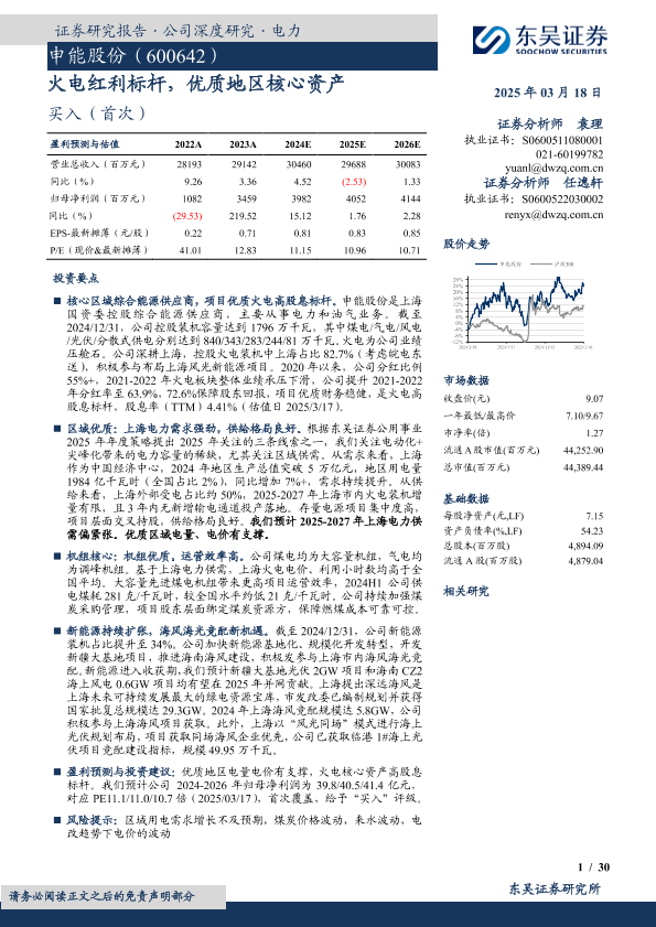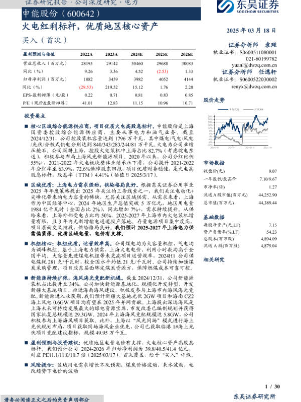 【东吴证券】【20250318】申能股份(600642)火电红利标杆,优质地区核心资产-30页