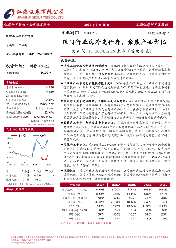 【江海证券】【20250318】方正阀门-920082.BJ-上市(首次覆盖):阀门行业海外先行者,聚焦产品优化-41页