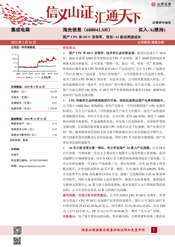 【山西证券】【20250326】国产CPU和DCU双领军,信创+AI驱动高速成长-37页