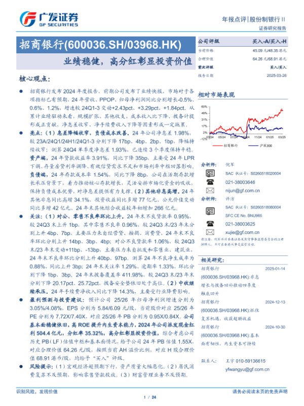 【广发证券】【20250326】招商银行(600036.SH/03968.HK):业绩稳健,高分红彰显投资价值-24页