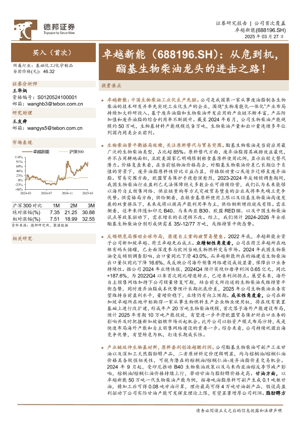 【德邦证券】【20250327】从危到机,酯基生物柴油龙头的进击之路!-30页