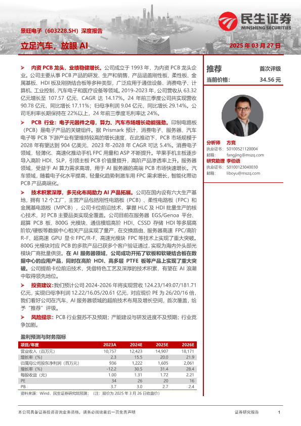 【民生证券】【20250327】景旺电子(603228.SH)深度报告:立足汽车,放眼AI-35页
