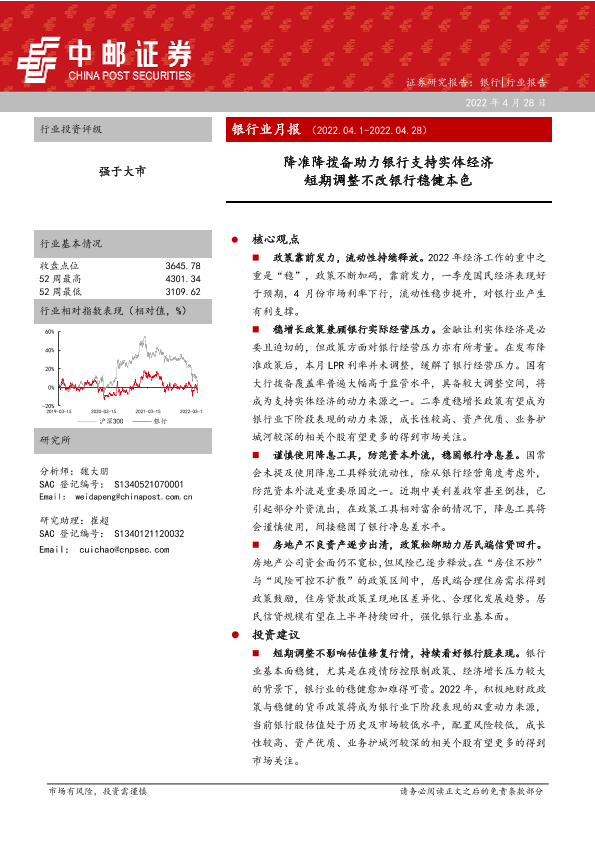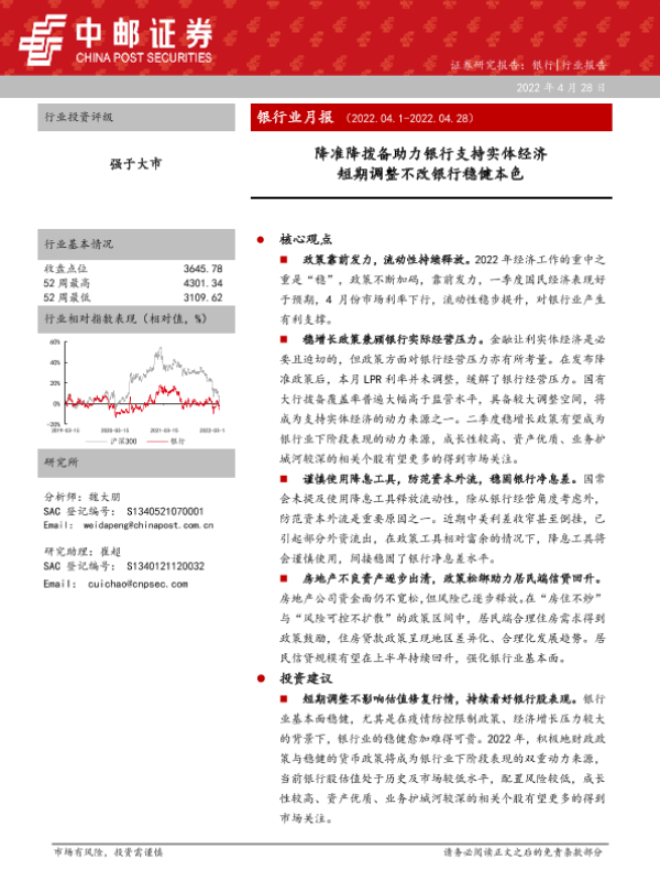 【中邮证券】【20220428】银行业月报:降准降拨备助力银行支持实体经济,短期调整不改银行稳健本色-34页