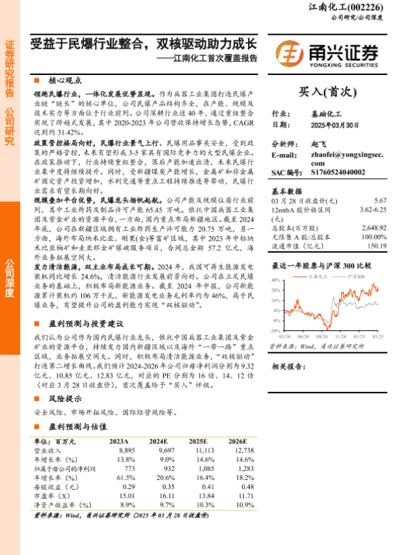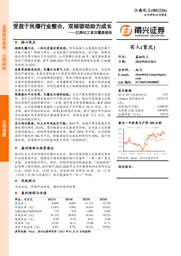 【甬兴证券】【20250330】江南化工首次覆盖报告:受益于民爆行业整合,双核驱动助力成长-22页