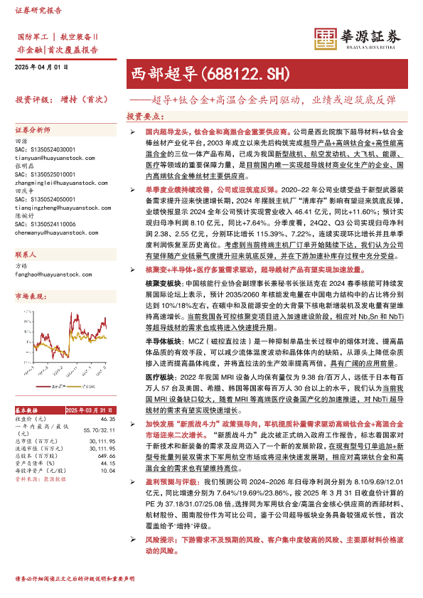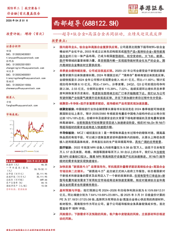 【华源证券】【20250401】西部超导-688122.SH-超导+钛合金+高温合金共同驱动,业绩或迎筑底反弹-25页