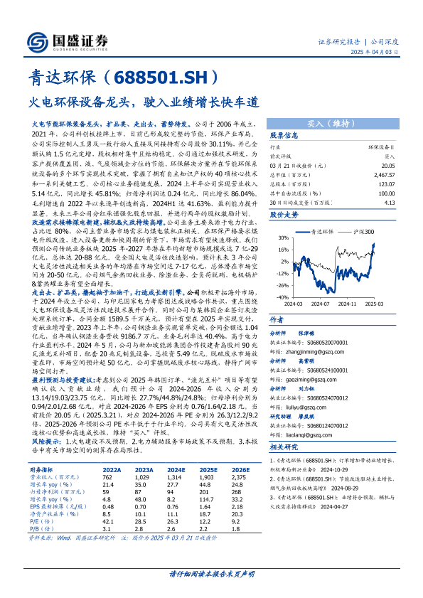 【国盛证券】【20250403】青达环保-688501.SH-火电环保设备龙头,驶入业绩增长快车道-23页