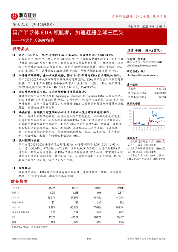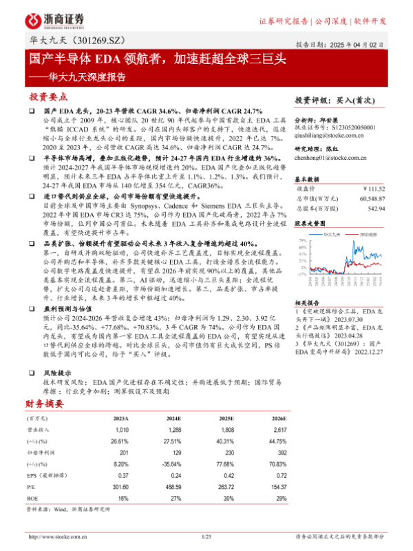 【浙商证券】【20250402】华大九天深度报告:国产半导体EDA领航者,加速赶超全球三巨头-25页