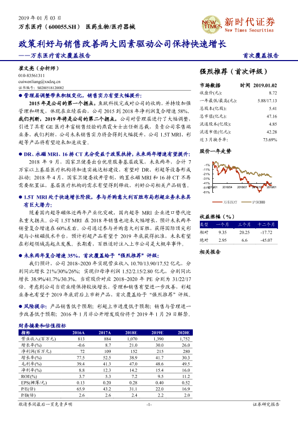 【新时代证券】【20190103】万东医疗首次覆盖报告:政策利好与销售改善两大因素驱动公司保持快速增长-35页