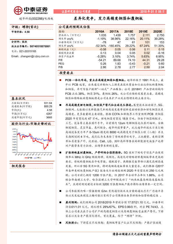 【中泰证券】【20190106】20190106-中泰证券-超华科技-002288.SZ-差异化竞争,发力高精度铜箔和覆铜板-19页