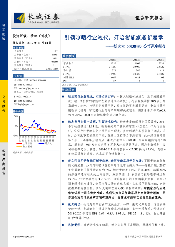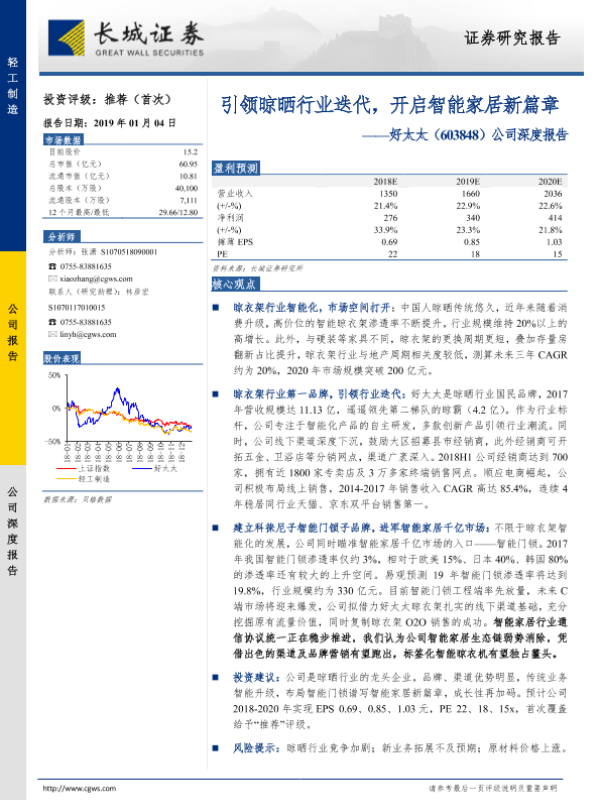 【长城证券】【20190104】20190104-长城证券-好太太-603848.SH-公司深度报告:引领晾晒行业迭代,开启智能家居新篇章-36页