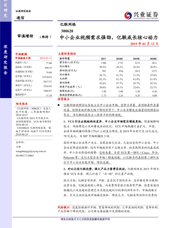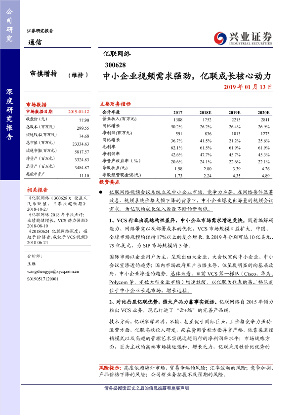 【兴业证券】【20190113】中小企业视频需求强劲,亿联成长核心动力-23页