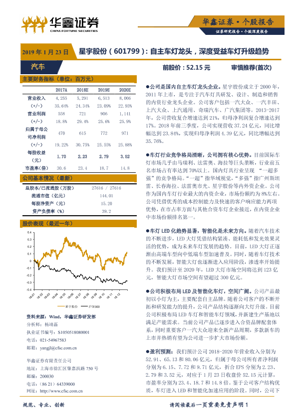 【华鑫证券】【20190123】星宇股份:自主车灯龙头,深度受益车灯升级趋势-23页