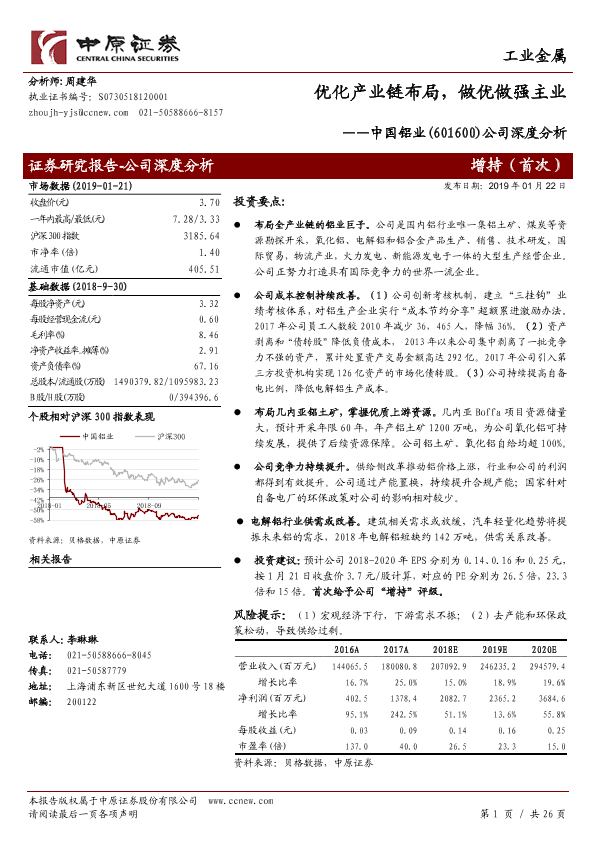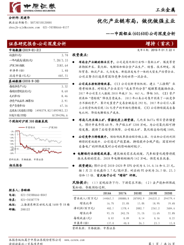 【中原证券】【20190122】中国铝业-601600.SH-公司深度分析:优化产业链布局,做优做强主业-26页