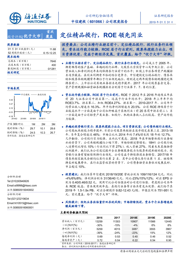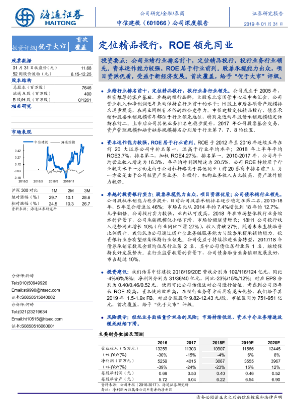 【海通证券】【20190131】20190131-海通证券-中信建投-601066.SH-公司深度报告:定位精品投行,ROE领先同业-24页