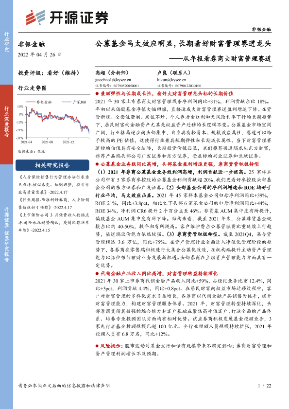 【开源证券】【20220426】非银金融行业:从年报看券商大财富管理赛道,公募基金马太效应明显,长期看好财富管理赛道龙头-22页