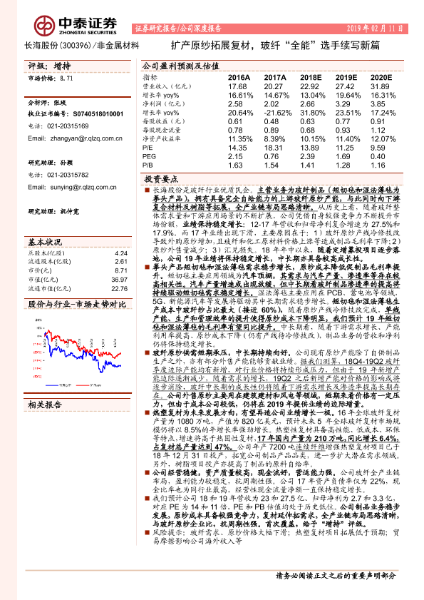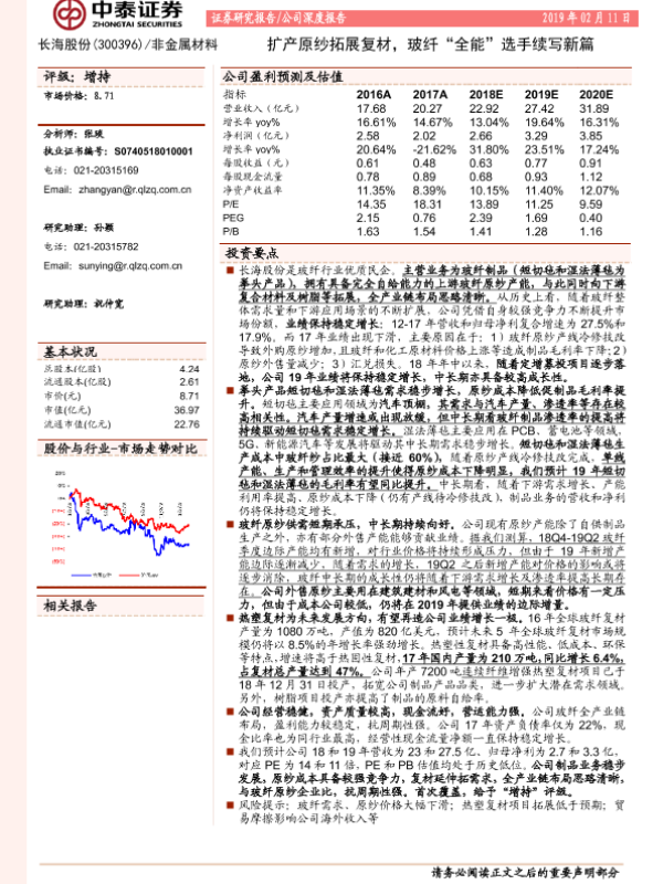公司分析 复合材料 市场预测 玻纤行业 长海股份