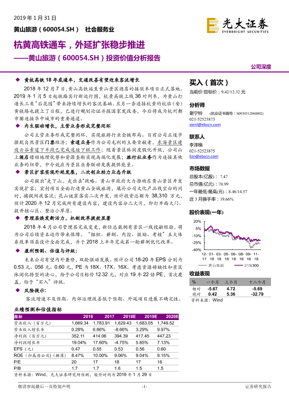 【光大证券】【20190131】20190131-光大证券-黄山旅游-600054.SH-投资价值分析报告:杭黄高铁通车,外延扩张稳步推进-30页