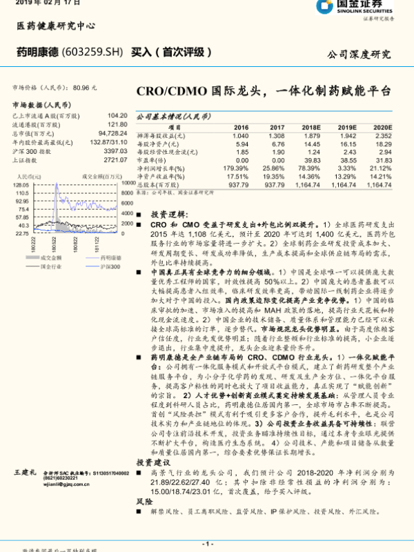 【国金证券】【20190217】CRO CDMO国际龙头,一体化制药赋能平台-68页