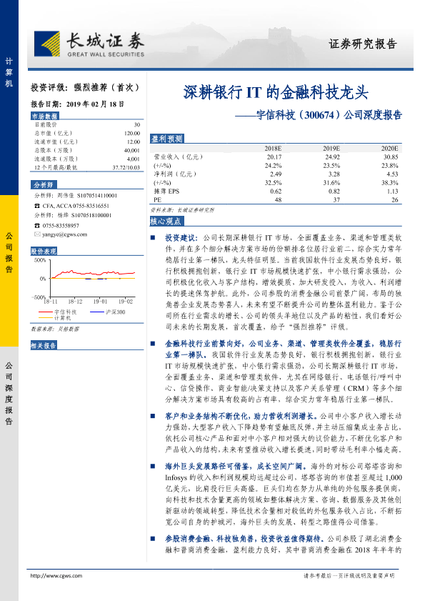 【长城证券】【20190218】20190218-长城证券-宇信科技-300674.SZ-深耕银行IT的金融科技龙头-37页