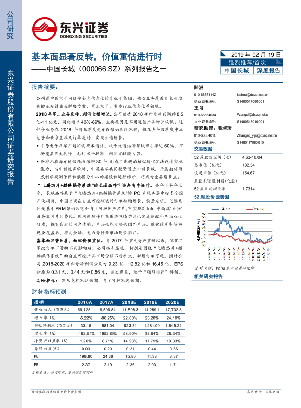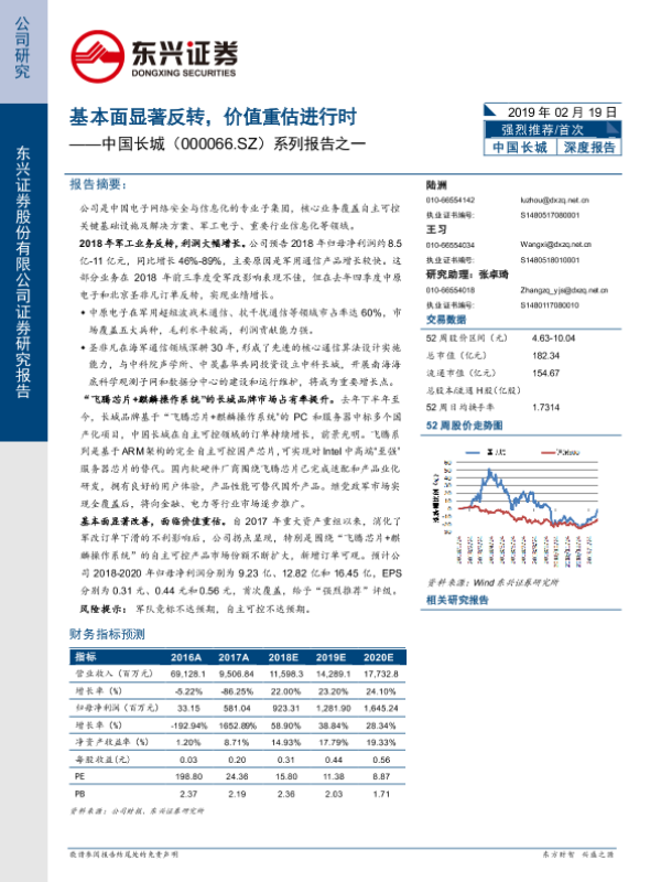 【东兴证券】【20190219】20190219-东兴证券-中国长城-000066.SZ-系列报告之一:基本面显著反转,价值重估进行时-18页