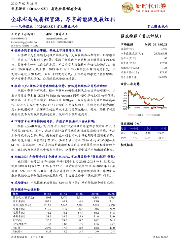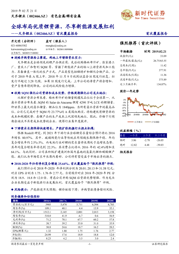 【新时代证券】【20190221】20190221-新时代证券-天齐锂业-002466.SZ-首次覆盖报告:全球布局优质锂资源,尽享新能源发展红利-48页