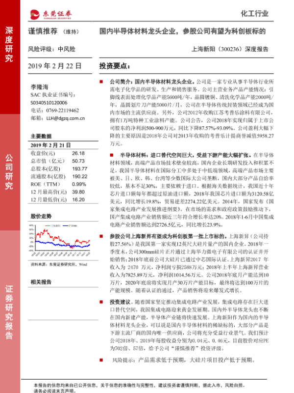【东莞证券】【20190222】国内半导体材料龙头企业,参股公司有望为科创板标的-14页