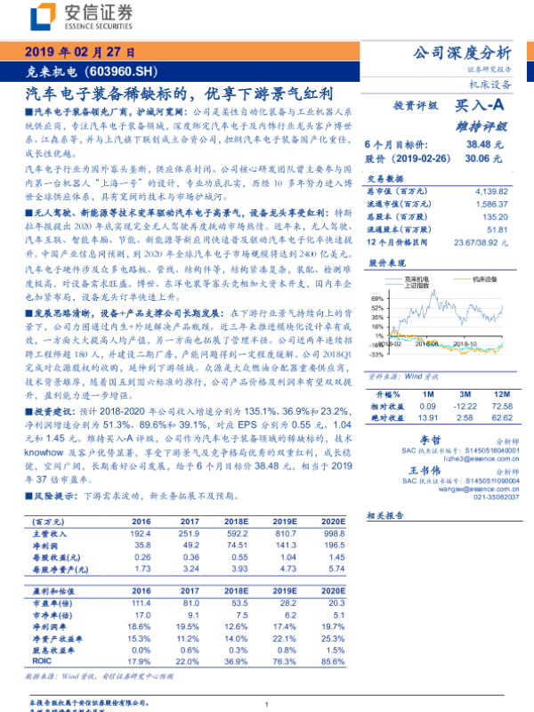 【安信证券】【20190227】汽车电子装备稀缺标的,优享下游景气红利-30页
