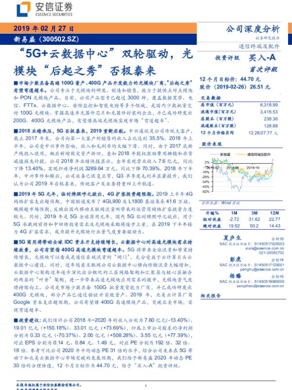 【安信证券】【20190227】“5G+云数据中心”双轮驱动,光模块“后起之秀”否极泰来-25页
