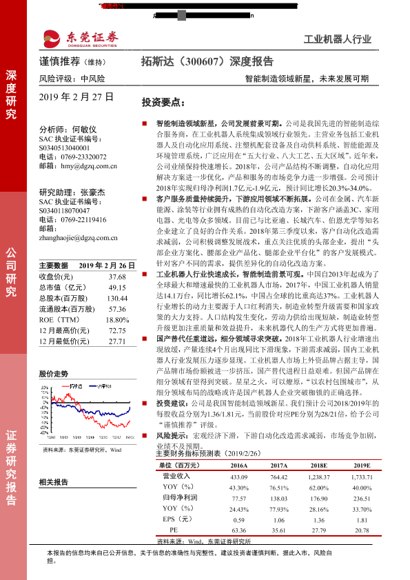 【东莞证券】【20190227】20190227-东莞证券-拓斯达-300607.SZ-智能制造领域新星,未来发展可期-22页