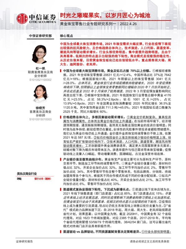 投资建议 消费趋势 行业分析 黄金珠宝 珠宝市场