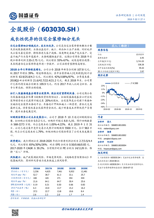 【国盛证券】【20190227】全筑股份(603030.SH)成长性优异的住宅全装修细分龙头-20页
