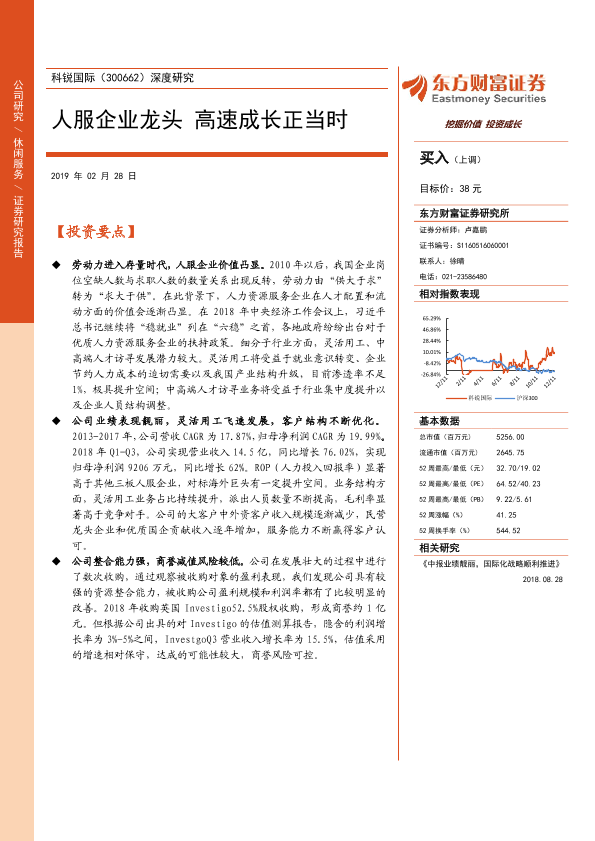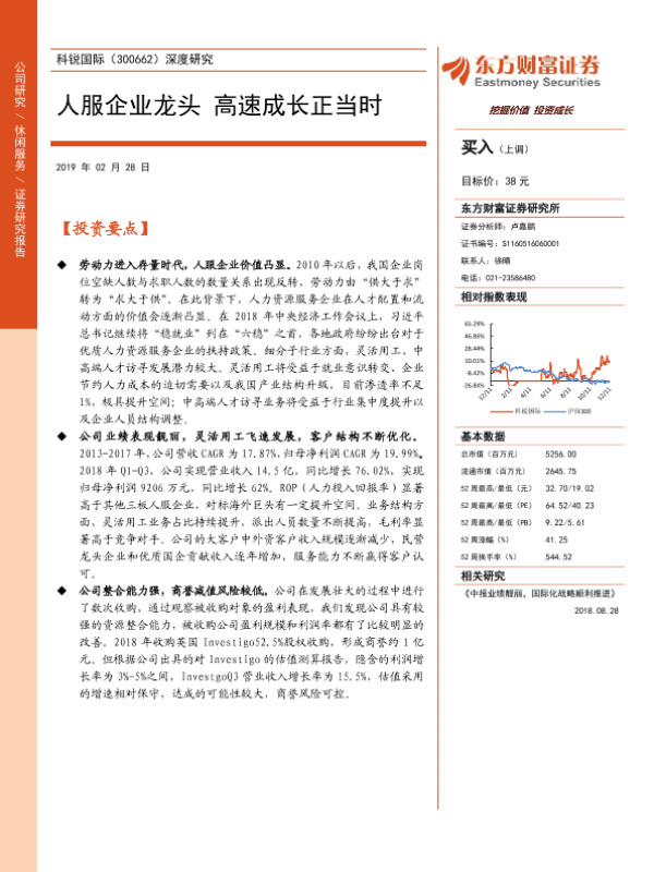 【东方财富证券】【20190228】科锐国际(300662)深度研究:人服企业龙头高速成长正当时-32页
