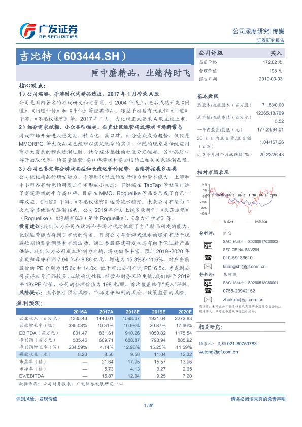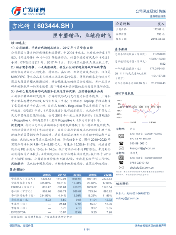 业绩预测 吉比特 游戏行业 精品游戏 证券分析