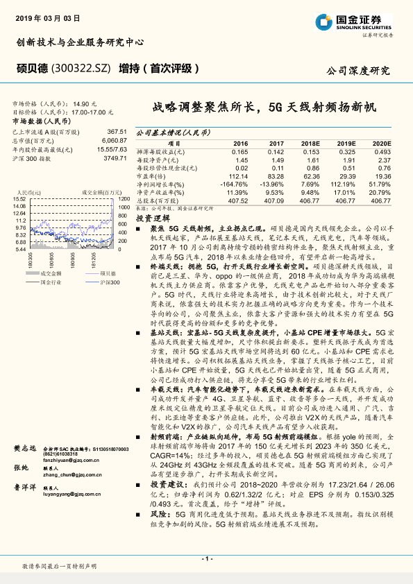 5G技术 天线射频 市场预测 硕贝德 证券分析