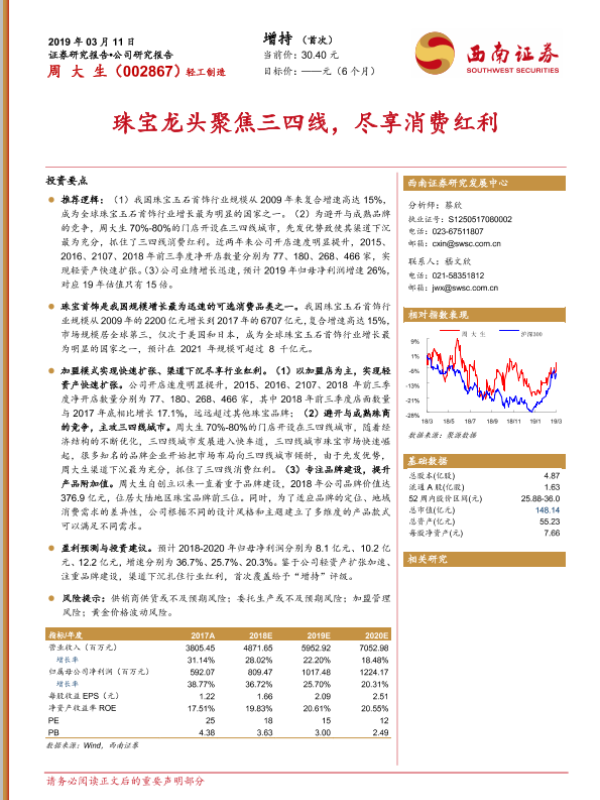 【西南证券】【20190311】周大生-002867.SZ-珠宝龙头聚焦三四线,尽享消费红利-25页