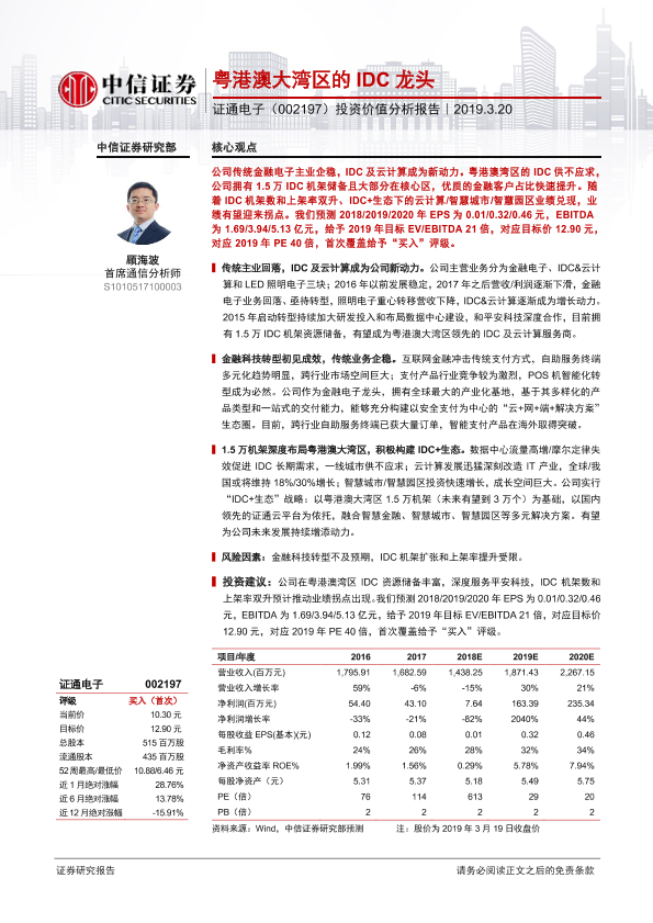 【中信证券】【20190320】证通电子-002197.SZ-投资价值分析报告:粤港澳大湾区的IDC龙头-29页