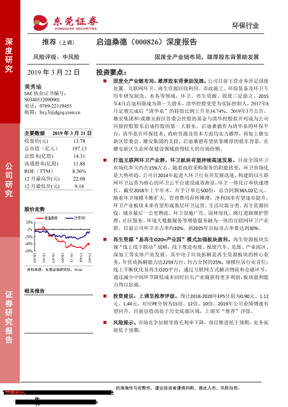 【东莞证券】【20190322】20190322-东莞证券-启迪环境-000826.SZ-深度报告:固废全产业链布局,雄厚股东背景助发展-17页