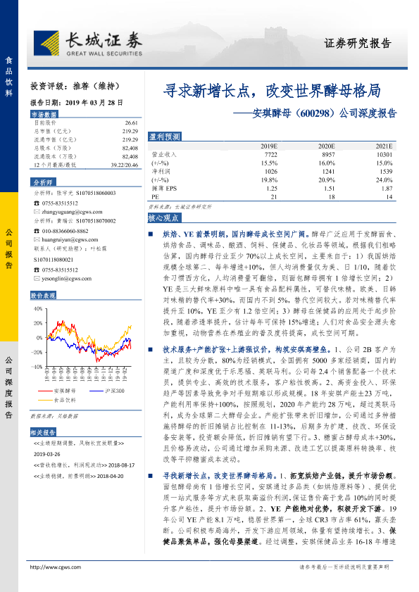 【长城证券】【20190328】20190328-长城证券-安琪酵母-600298.SH-公司深度报告:寻求新增长点,改变世界酵母格局-30页