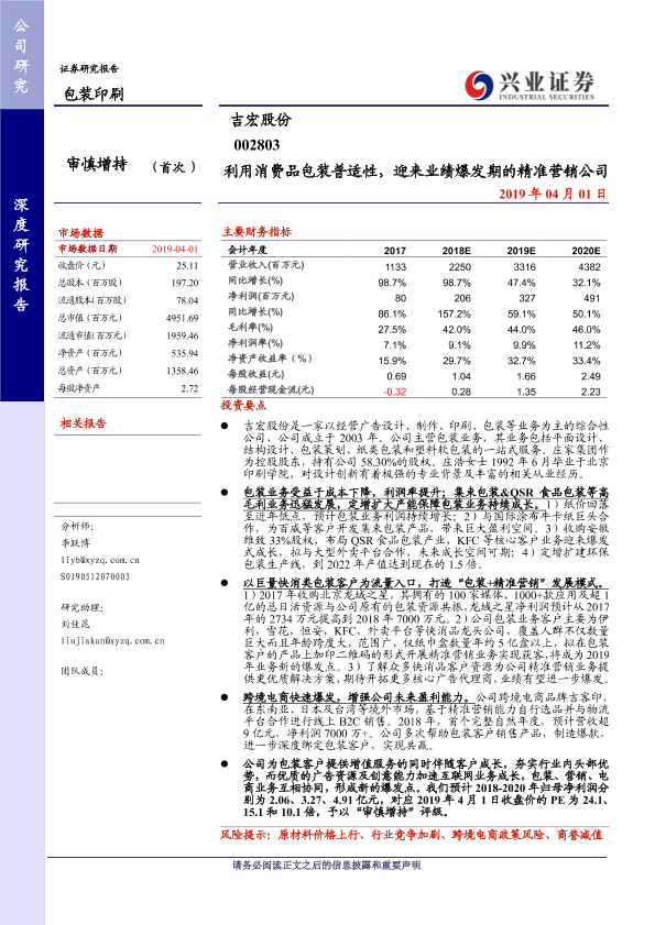 业绩预测 包装印刷 环保包装 精准营销 跨境电商