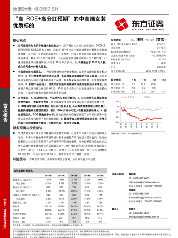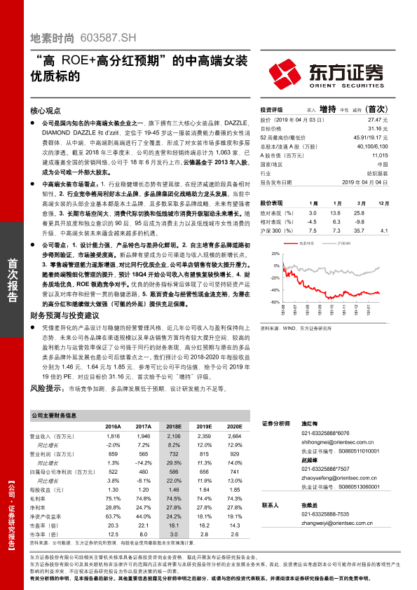 【东方证券】【20190404】地素时尚首次报告 —— “高ROE+高分红预期”的中高端女装优质标的-27页